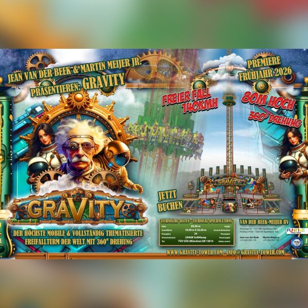 Dabei feiert ein neues Geschäft Premiere: Gravity Tower ist der höchste mobile und vollständig thematisierte Freifallturm der Welt – und das sogar mit 360 Grad Drehung! Oben kann der Ausblick über Berlin bewundert werden – und dann geht es aus 80 Metern Höhe mit bis zu 140km/h im freien Fall wieder nach unten! Darüber hinaus warten auf die Gäste verschiedenste Attraktionen von Riesenrad über Autoscooter bis hin zur Geisterbahn.